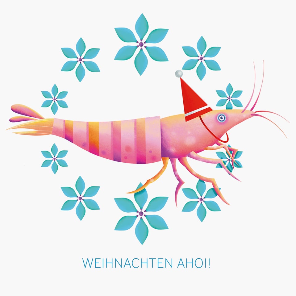 Humor, Meerbrise und fröhlichen Weihnachts-Vibes begleiten diese Garnele.
