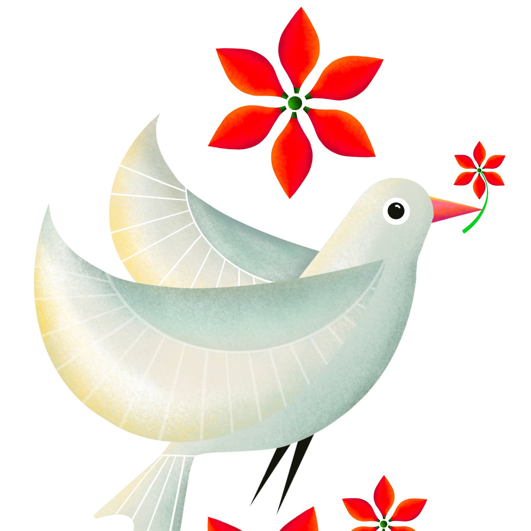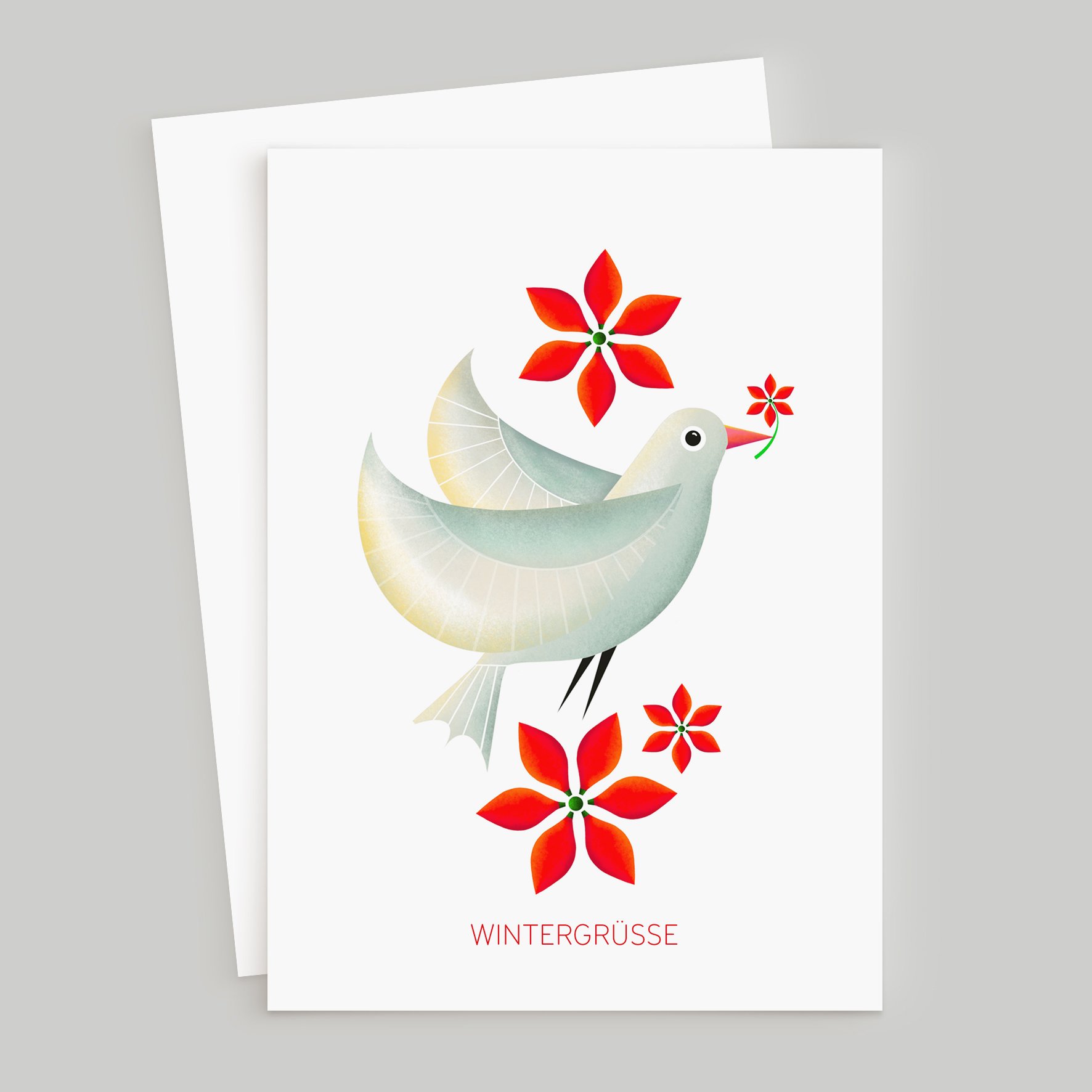 Meine Friedenstaube bringt zarte winterliche Blumengrüße – ein Symbol für Ruhe, Hoffnung und Verbundenheit.