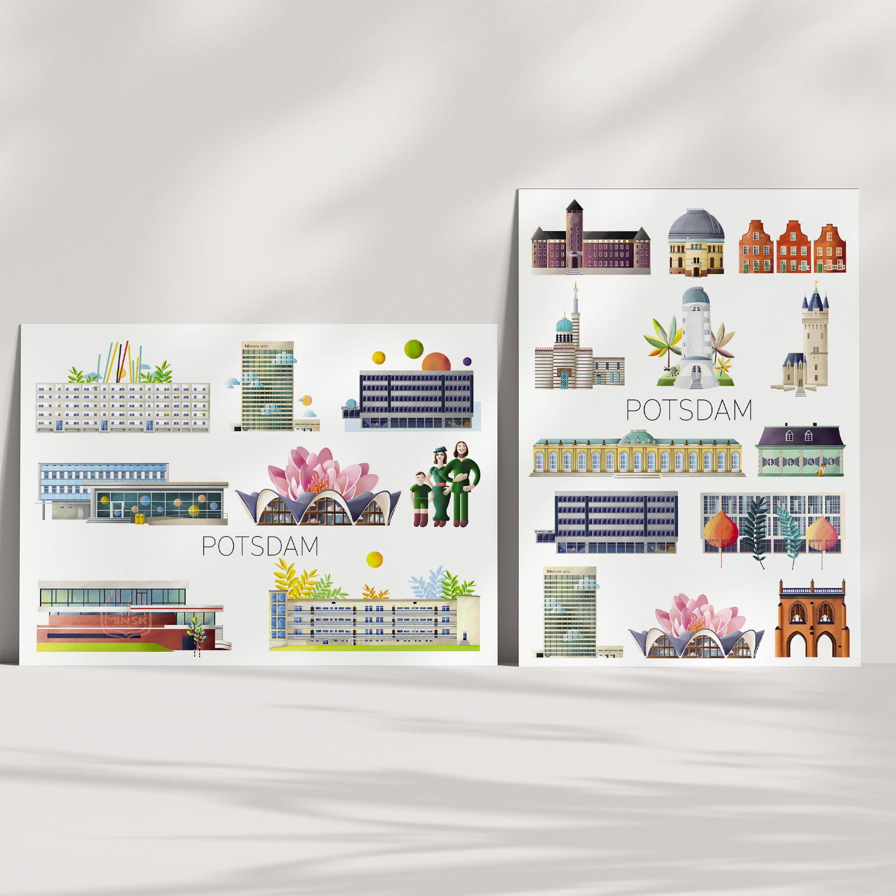 Einzelne Gebäude, wie das Hotel Mercure, das Rechenzentrum und das Minsk, gibt es auch als Einzelmotive im Shop.